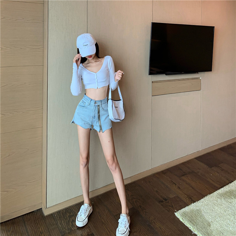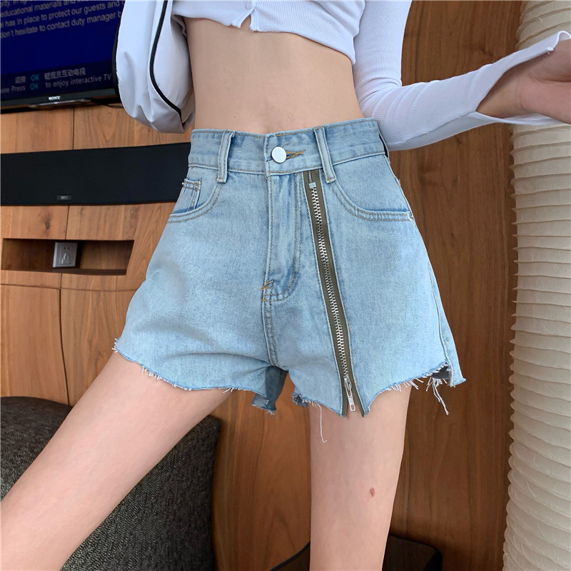 All-match Thin wide-leg Loose Side Zipper Denim Shorts