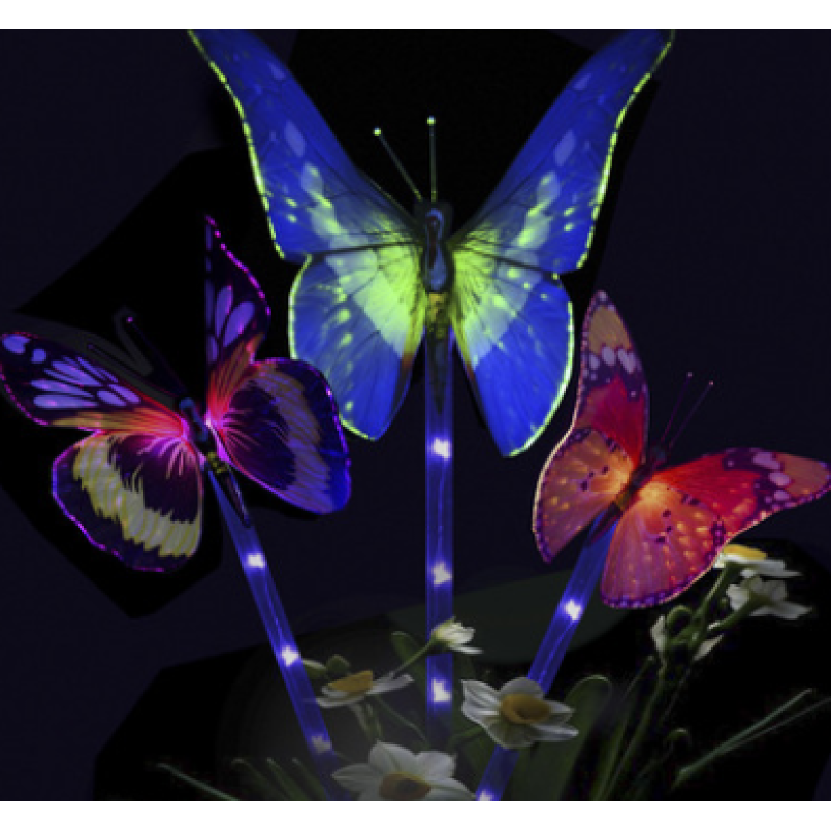 1. Perfect Solar Yard Decoration - 30 inch tall, RGB color changing solar powered fiber optic butterfly garden stake lights, with 5 purple LEDs in each transparent stake which has fabulous light effect.