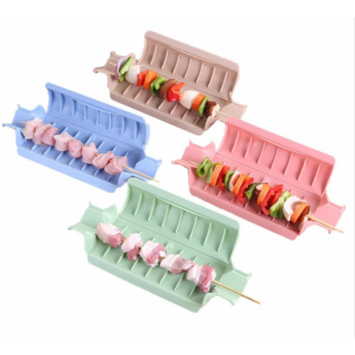 Feature: 100% Brand New High Quality Easy to use, making skewers fast Usage : Great for meat, fruit and vegetables. Applicable Place : Home Outdoor Barbecue Skewering food for barbecue can be messy and time consuming. Material: PP Color: Khaki, Green, Blue, Pink Size: 18.5*17.2cm Used for: BBQ, Barbecue, Kebab, Baked Skewers. Used in: Home, Kitchen, Picnic. Package includes: 1PCS Skewers Tool |