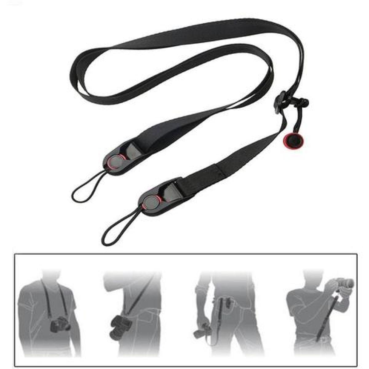The most versatile pro camera strap in the world, the newly upgraded Slide can be worn as a sling, neck, or shoulder strap. Internally-padded nylon webbing has a smooth side that glides over clothing in sling mode and a grippy side that prevents slipping in shoulder mode. Dual quick-adjusters provide instant access and easy reconfiguration. Unique Anchor Link system connects quickly and dual points of connection keep your camera more stable than traditional sling straps. Shipped with updated V4 Anchors. Updates include: new silicone grip, upgraded webbing, and lower profile strap/hardware transitions. Anchor connectors have been updated to be smaller, faster, and more secure.