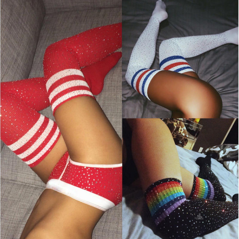 Bling Glitter Women Over Knee Long Boot Women Socks Sexy Thigh High Over the Knee Socks Long Stockings For Girls Ladies Women