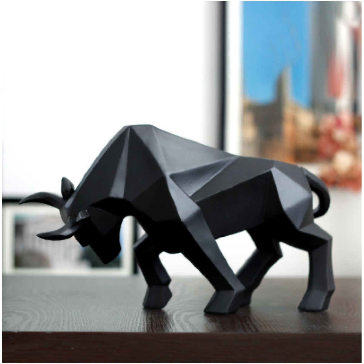 1. Description: Geometric Resin Bull Sculpture Abstract Bison Bull Statue Office Home Decor Art and Craft Decoration Anniversary Gift Accessories.