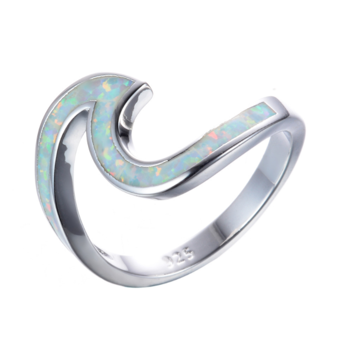Blaike White / Green / Blue / Purple / Pink / Orange Fire Opal Ocean Wave Rings For Women 925 Sterling Silver Filled Birthstone Beach Ring