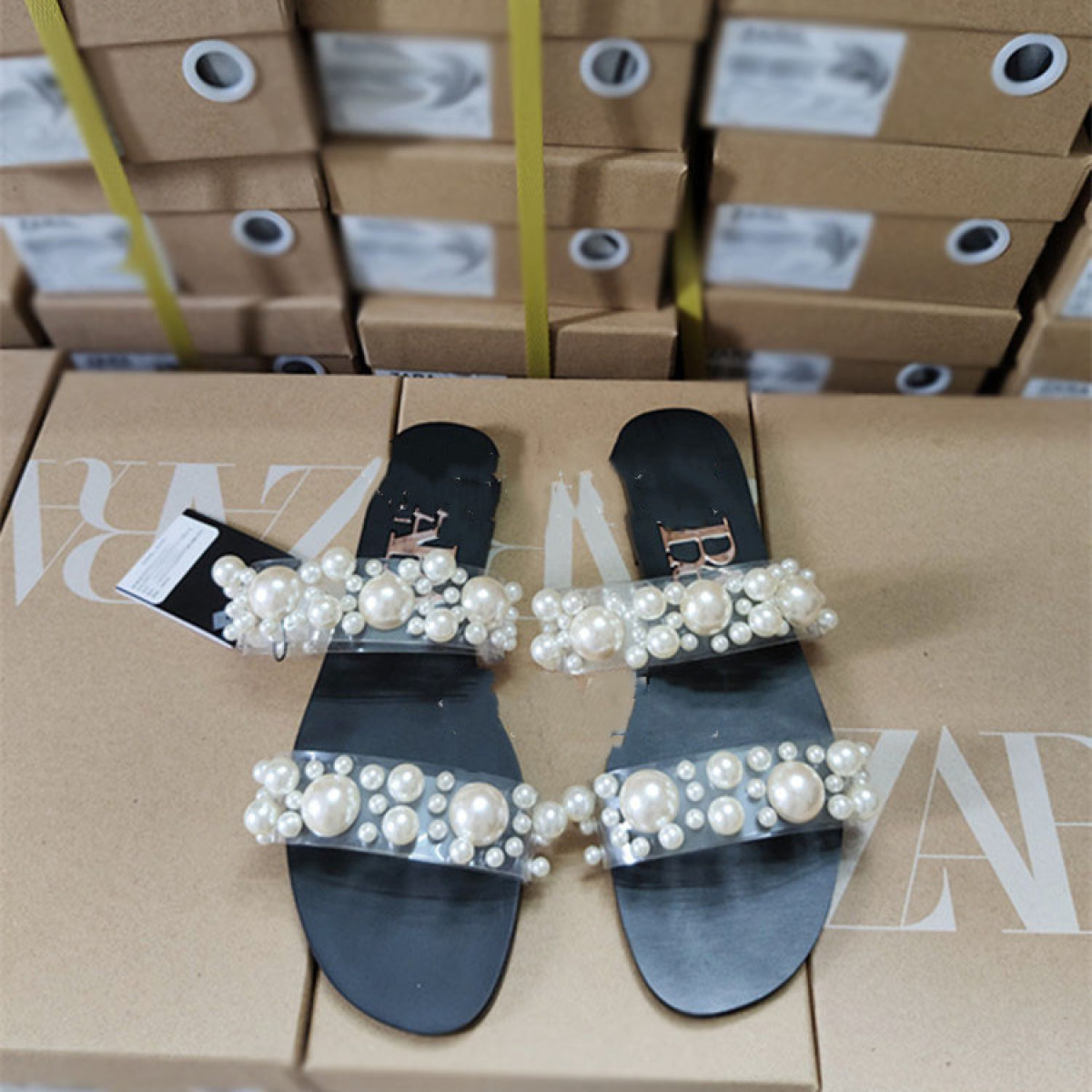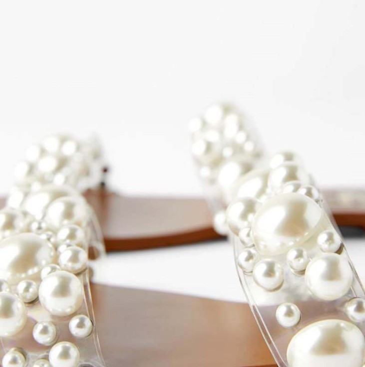 New transparent flat sandals with pearls