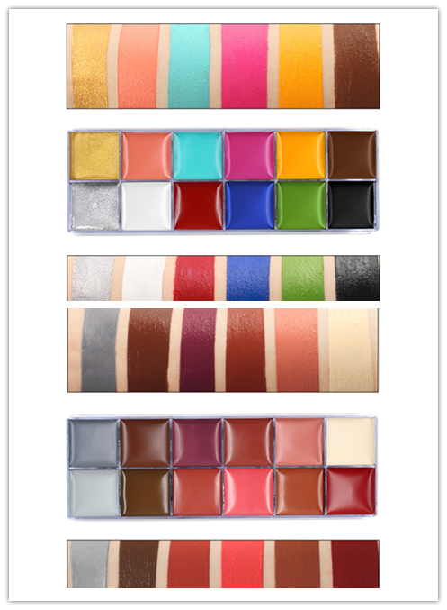 Set: contains a box of 12 color paints, six brushes, a palette, and a box of skin wax