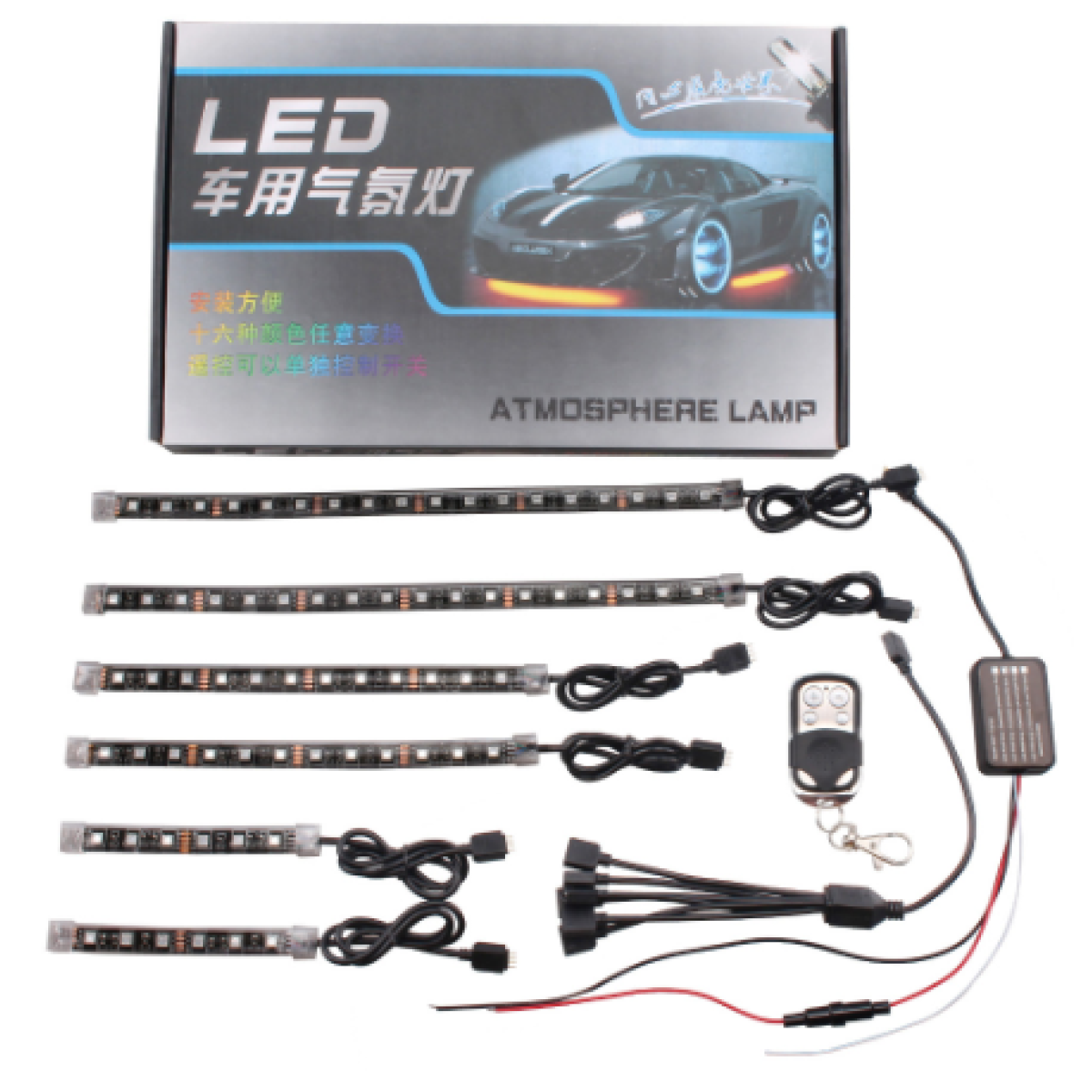 Automobile and motorcycle modified universal one for six LED remote control lights RGB atmosphere lights decorative lights atmosphere lights car decoration