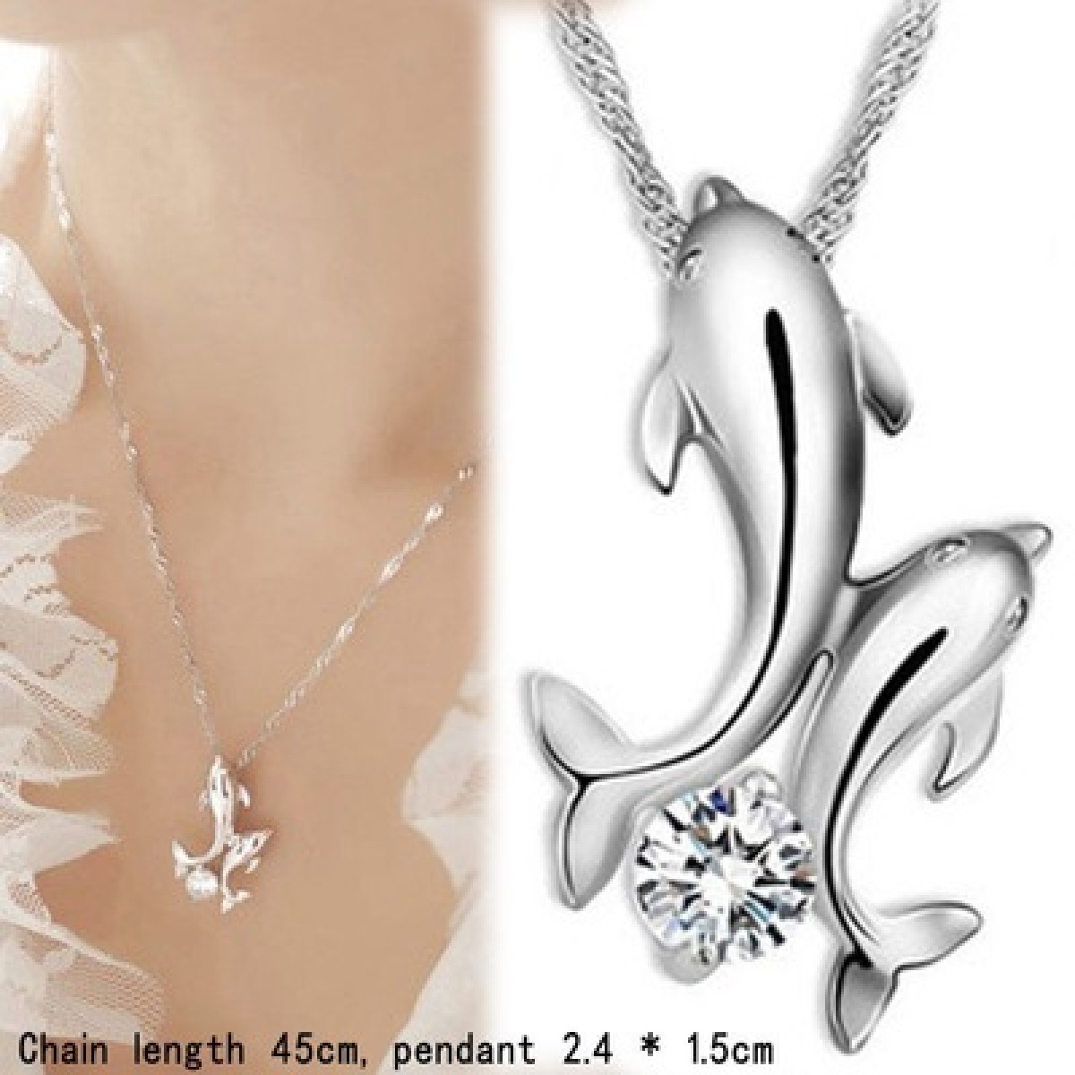Product Name: Korean jewelry Dolphin couple necklace Zircon diamond-encrusted ladies necklace ebay explosion models Factory wholesale