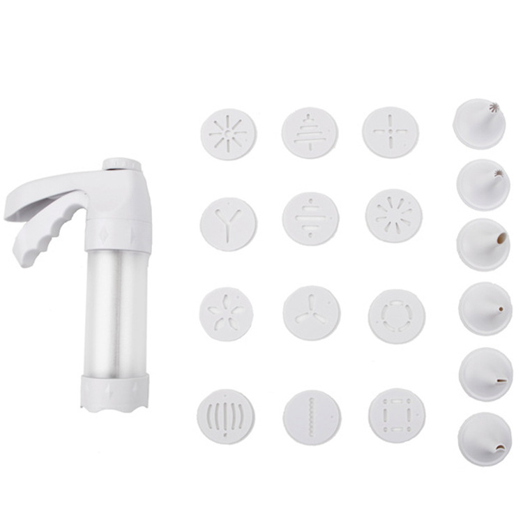Packaging: 1 Gun + 6 Nozzles + 12 Cookie Molds