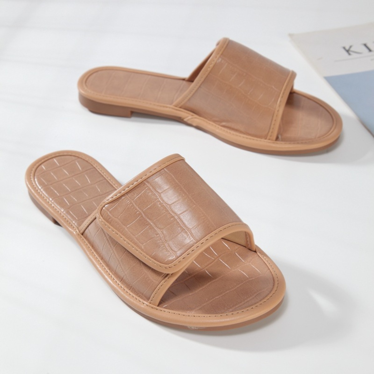 Stone Pattern One-Step Sandals and Slippers With Velcro Flat Slippers