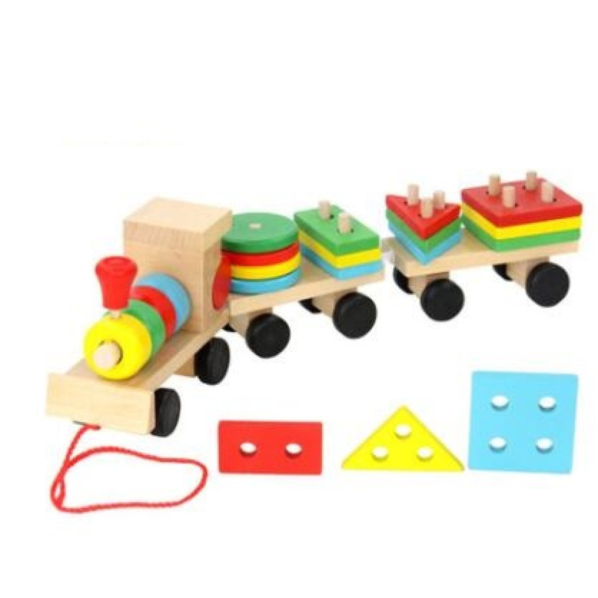 Let the baby drag the little train on the ground to stimulate the baby's curiosity. He will disassemble the train freely. The front of the train consists of four rings, a hammer-shaped crossbar and a screw. Take the screw down, take off the four rings, you can remove the front of the car, and let him install it; please teach the shape and color of the geometry on the small train to the baby, you can tell the story by referring to the real thing. Contrast, let the baby really understand the application of various shapes in life; let the baby put the circle, rectangle, triangle and square in their respective positions, observe the baby's completion, the difficulty level is the same? You can tell him why some shapes are easy to set, some shapes are not easy to set; let the baby take off the geometry on the car and arbitrarily compose various graphics; you can let the baby set the different shapes of wood In a different position, take a look at what is different, simply talk about different reasons.