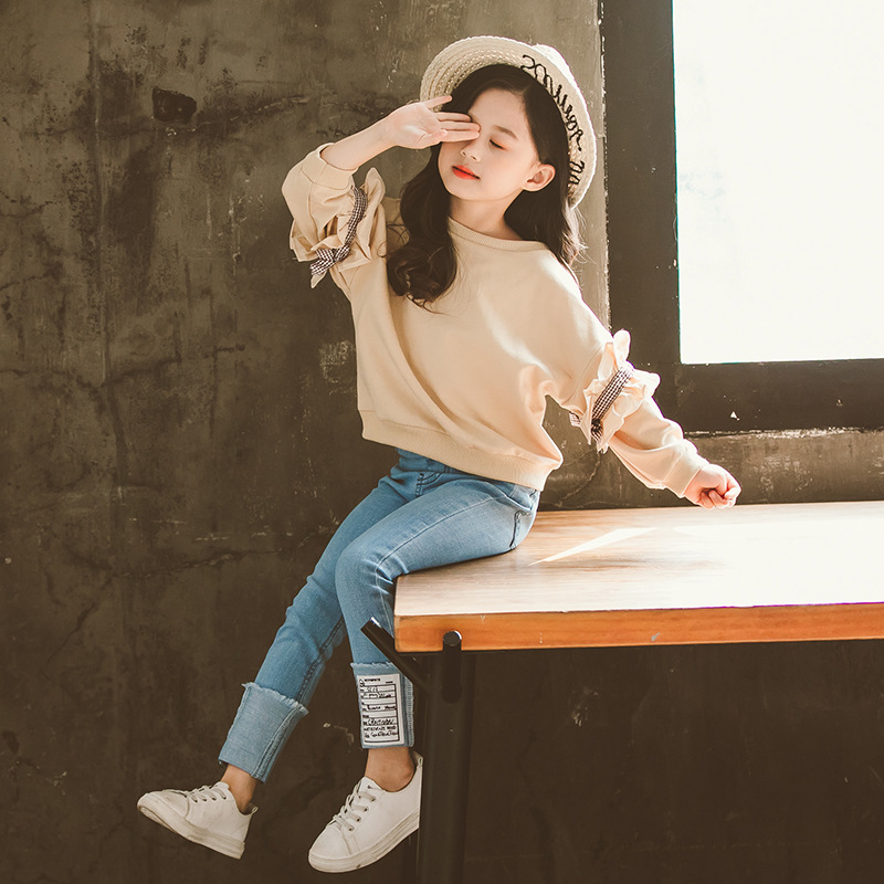 Lace sleeve jeans children's suit