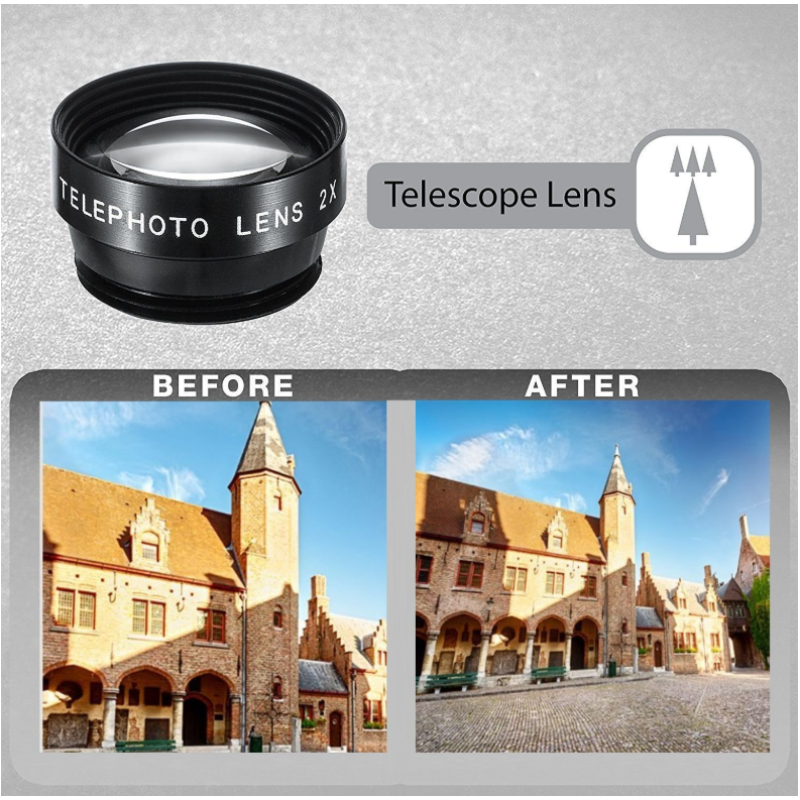 1 * 0.63x Wide Angle Lens + 1 * 15x Macro Lens(lenses can be separated to use the macro individually).