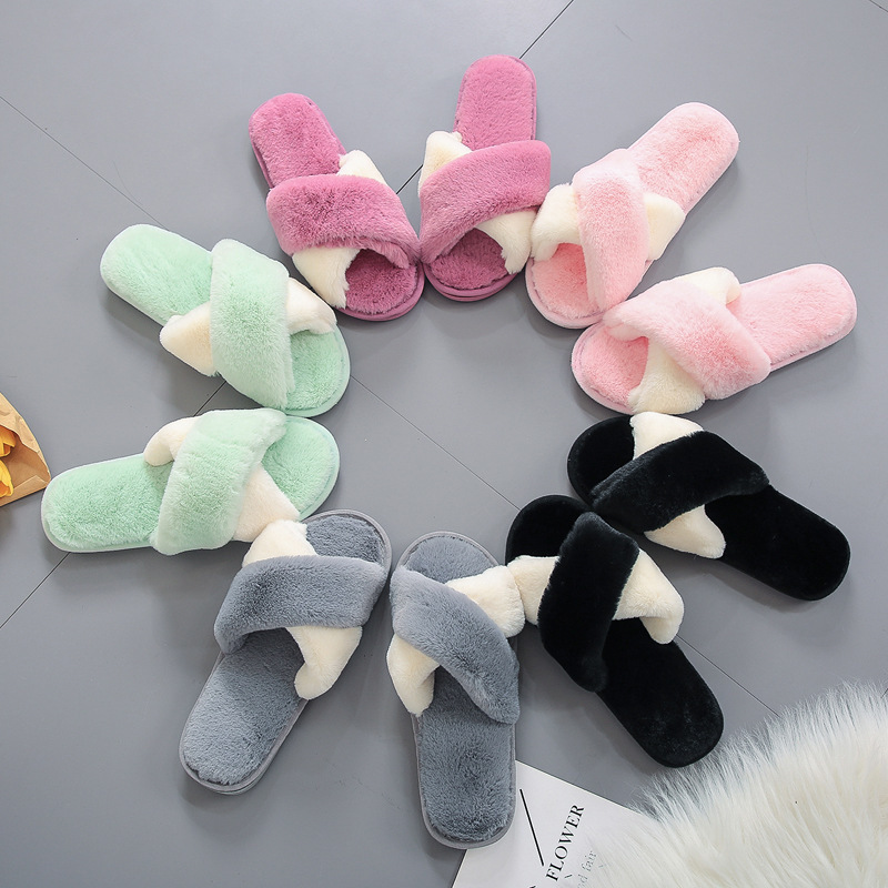 Plush cotton slippers