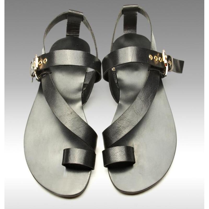 Toe style: pin toe Closed way: buckle Sole Material: Rubber Upper material: top layer cowhide (except cow suede) Leather material process: waxed leather color: black Size: 37 38 39 40 41 42 43 44 45 Shoe making process: adhesive heel bottom Style: Flat heel Popular elements: metal pattern: plain Season: Summer Occasion: Dating Style: Roman shoes Function: Breathable