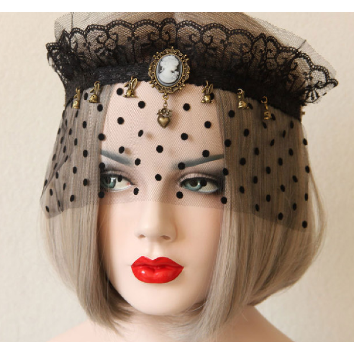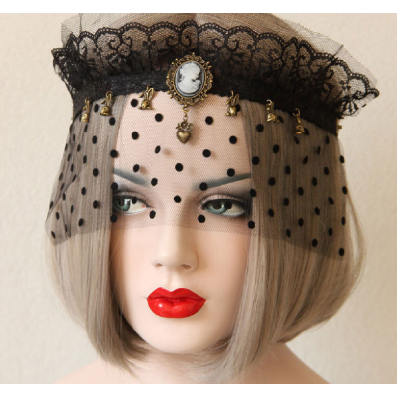 Material: Black lace,Mesh,Bronze alloy accessories,Resin Rhinestone,Elastic rope。