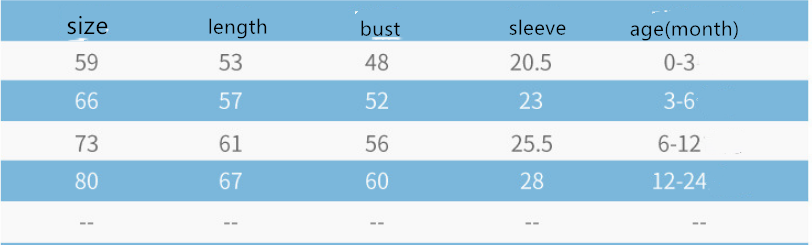 Suitable height: 59 (0-3 months), 66 (3-6 months), 73 (6-12 months), 80 (12-24 months)