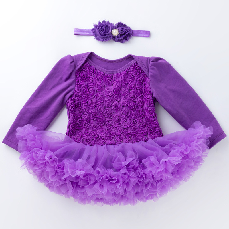 Solid color composite rose dress for girls 0-2 years old