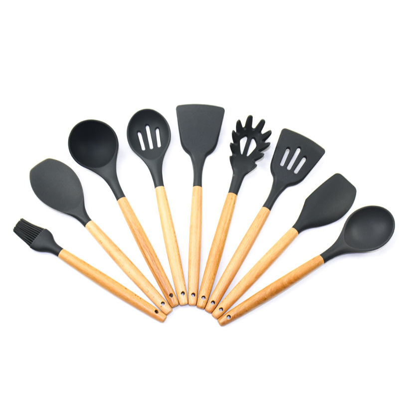 Size: 9-piece set of wooden handle kitchen, knife-type scraping, flat-head scraping, dense shovel, leaking shovel, face grab, brush, small spoon, soup spoon, small colander