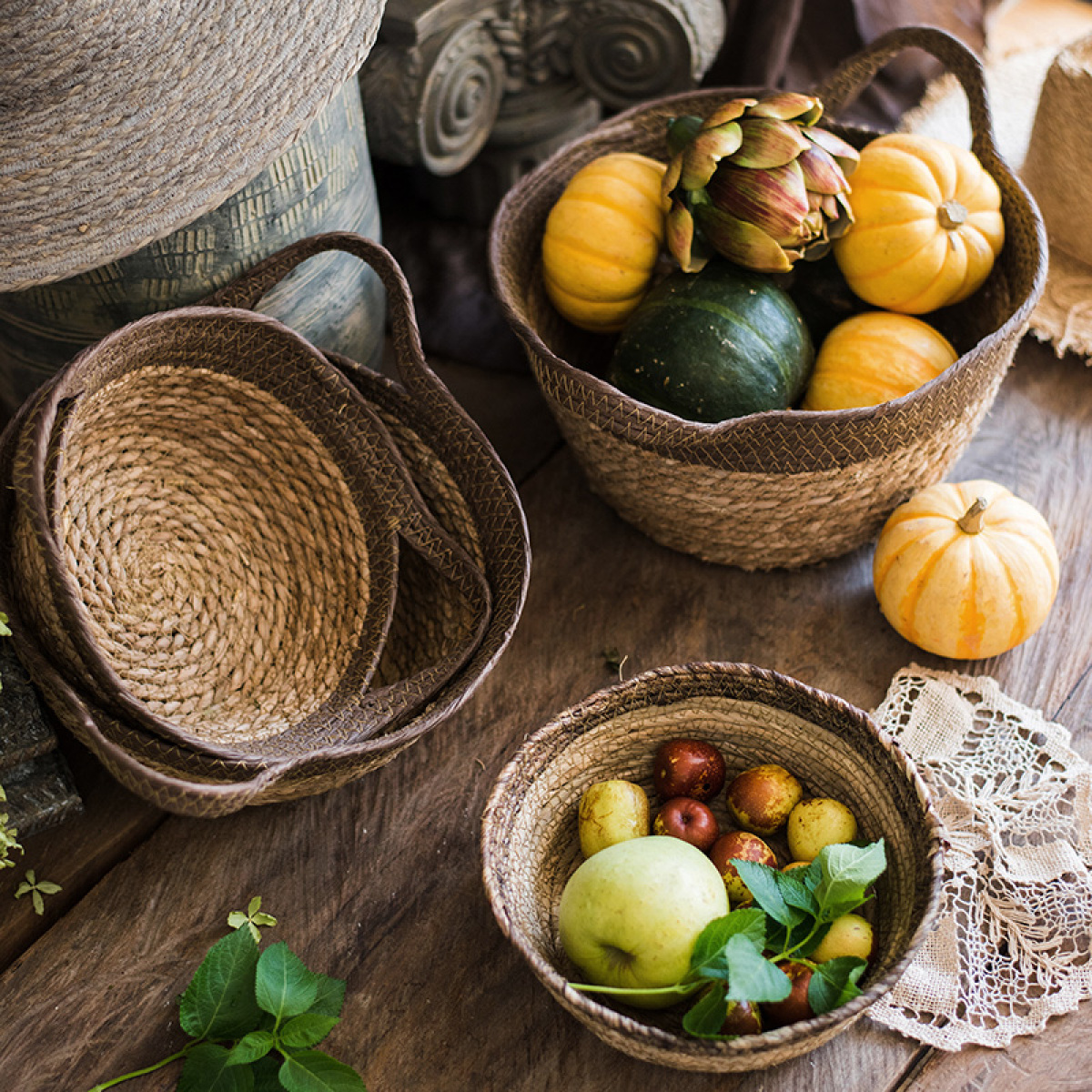 Product category: Natural straw woven soft storage basket