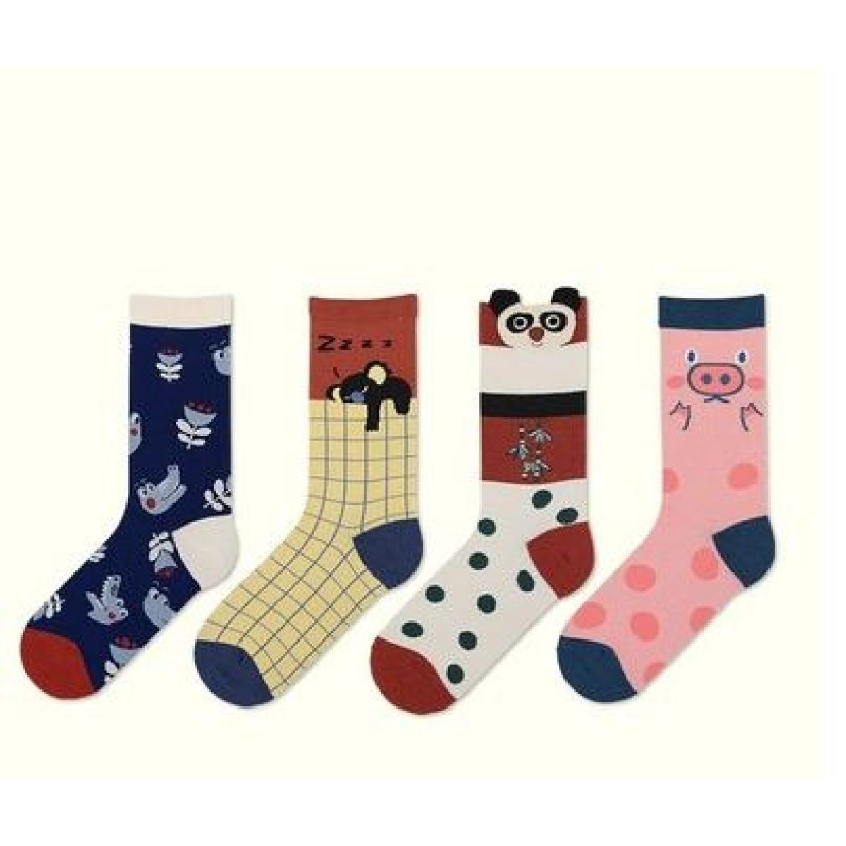 Zoo cartoon illustration female socks cute trendy socks cotton socks in tube socks