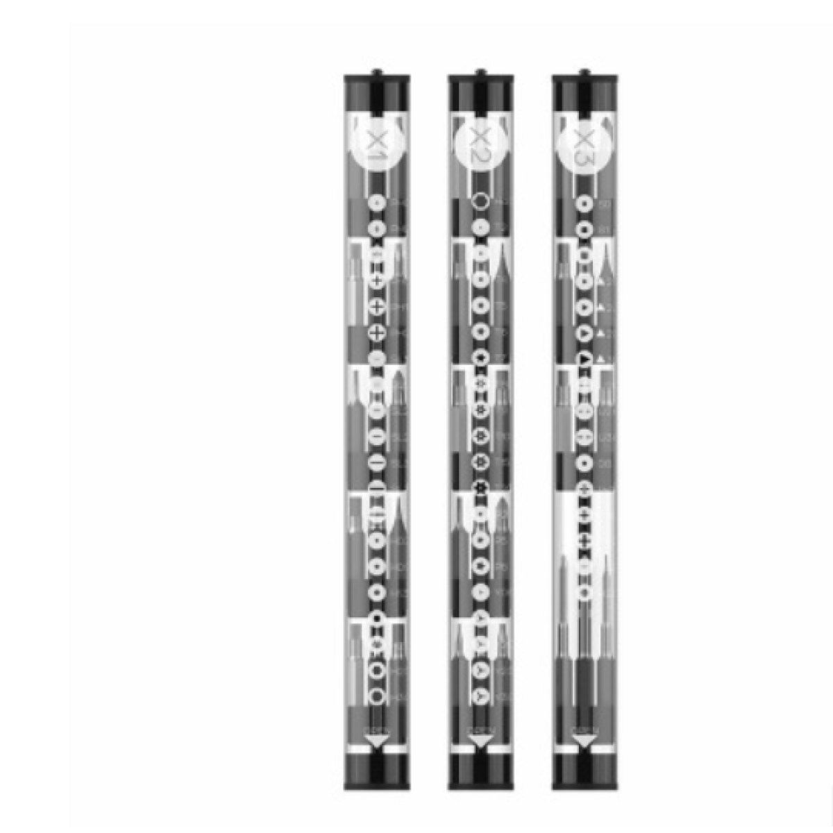 X0 X1 X2 X3 batch head is medium S2 steel. Personal disassembly and adequate household use. In addition, the bottom of the batch head of X0 X1 X2 X3 is a hexagon of 4MM with a length of 28MM, which is a commonly used specification in the screwdriver set of small and medium-sized specifications at present. It can be used with many small and medium size sets. For example, wowstick full series products 1p 1p+ 1F 1FS 1F+ A1 1S can be used for all these models, as well as the market 32, 1, 33, 1, 45, 1, 58, 1 and south flag 22 in one and 28 in one. The bottom size is the same 4MM hexagon.