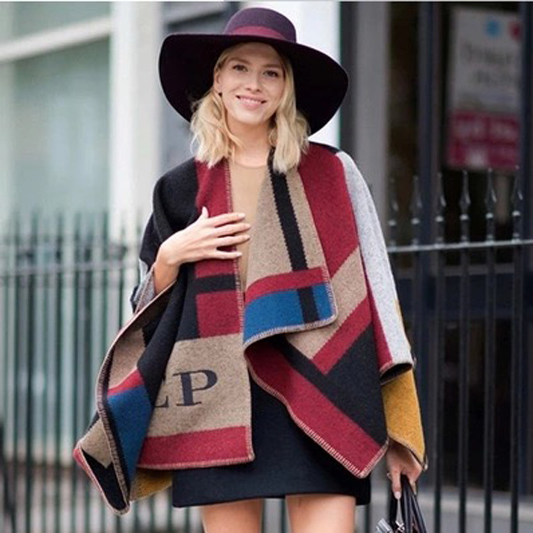Product name: Tang Wei's same shawl 2020 European and American ladies OP catwalk autumn and winter knitted blanket-style women's cape