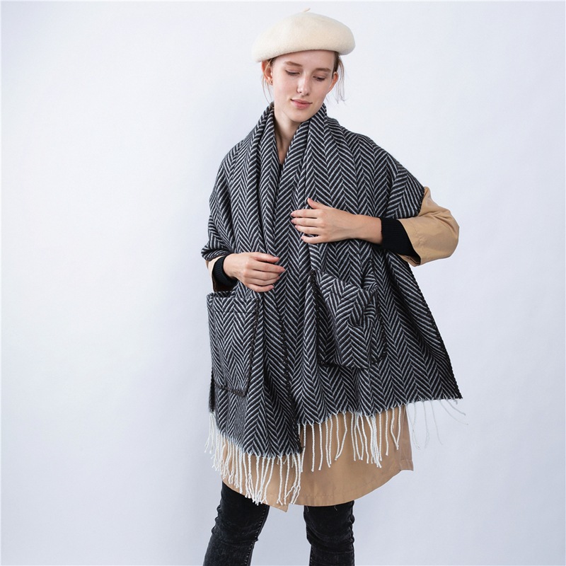 Color: Dark gray pocket shawl, khaki pocket shawl