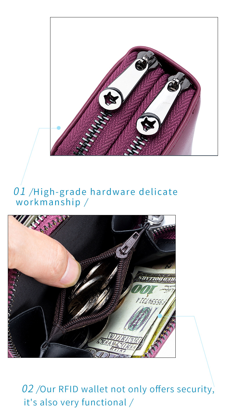 Internal structure: zipper compartment, card slot, hidden compartment, change location, document location