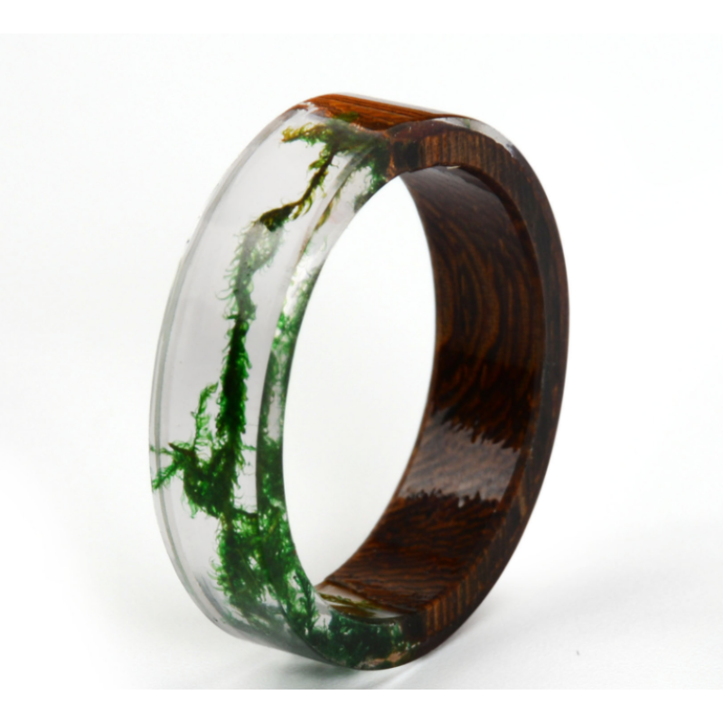AMORUI New Handmade Wood and Resin Ring Green Moss Ring Fashion DIY Manual Dried Flowers Epoxy Ring For Women Men Jewelry Gifts