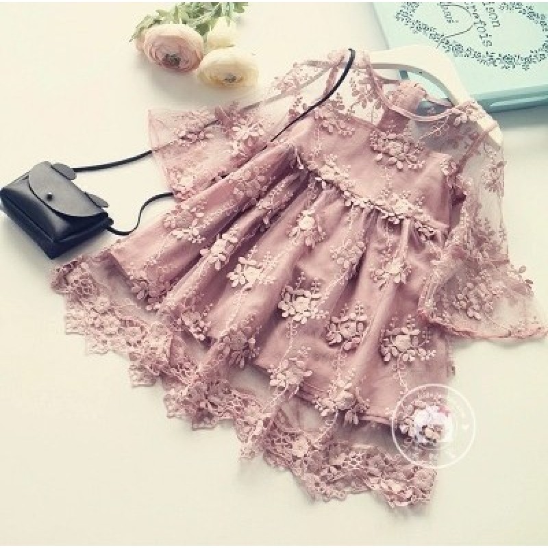2017 new version of Korean foreign trade children's clothing, children's princess skirt, lace trumpet sleeve embroidery, soft skirt, girl dress