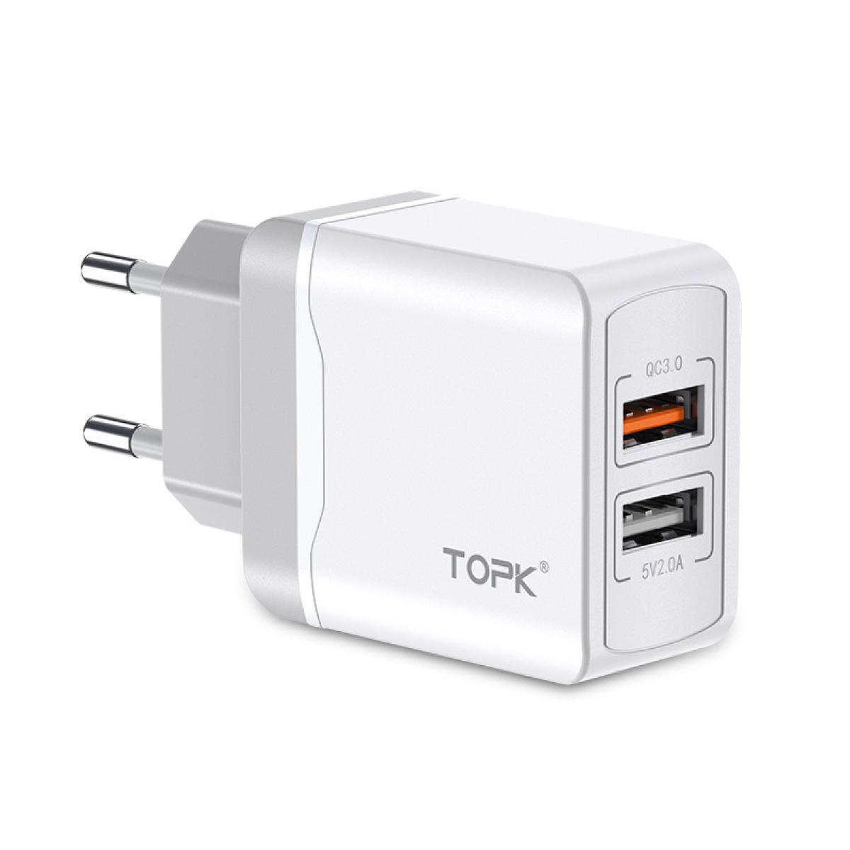 TOPK fast charge 3.0 18W QC 3.0 dual USB charger EU plug travel mobile phone charger