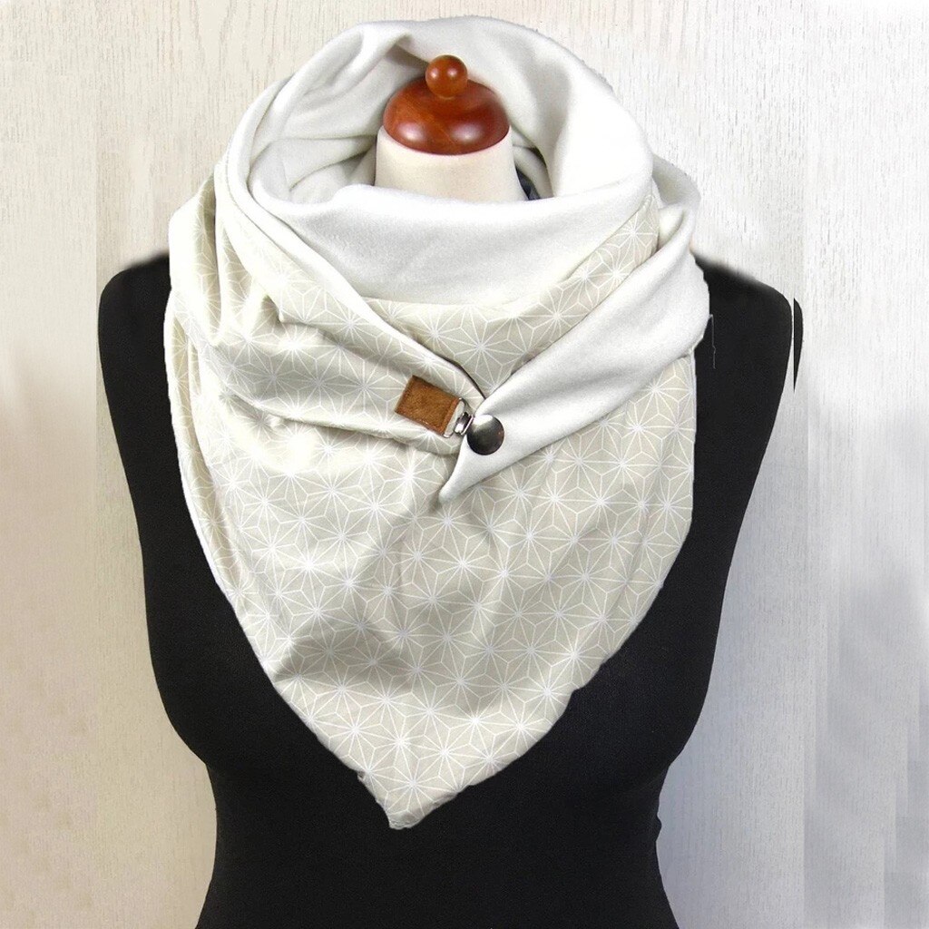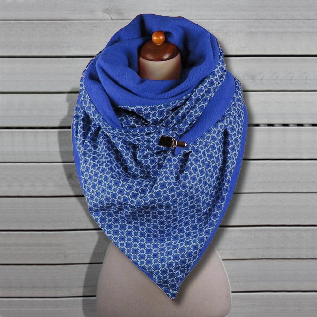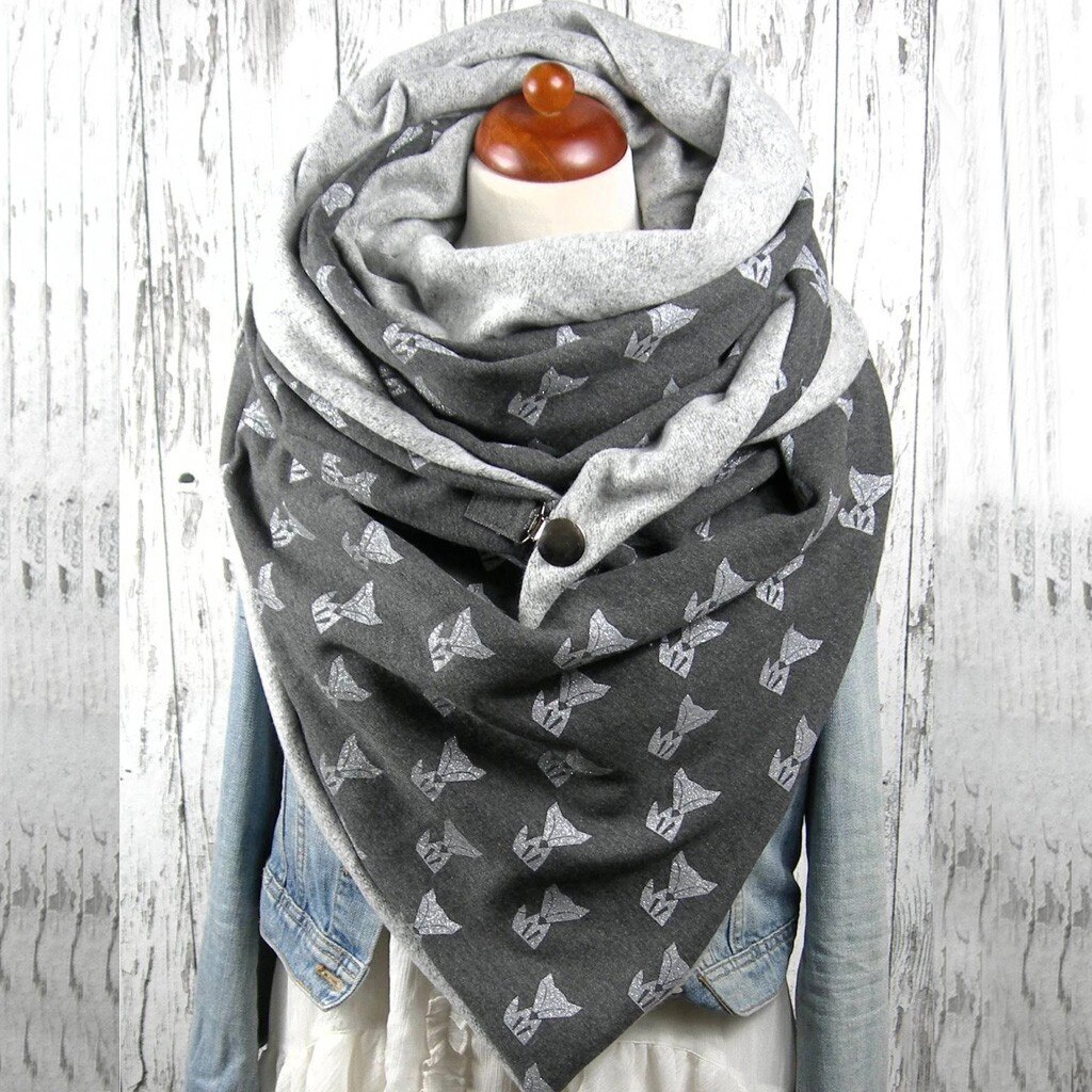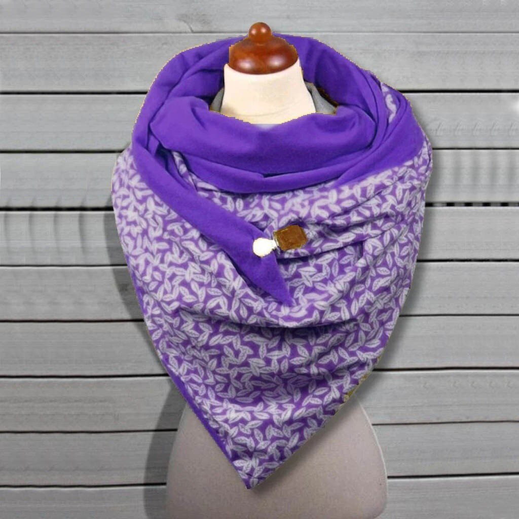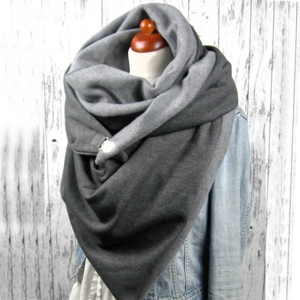 Fashionable Women's Solid Stitch Print Button Wrapped Soft Casual Warm Scarf Shawl
