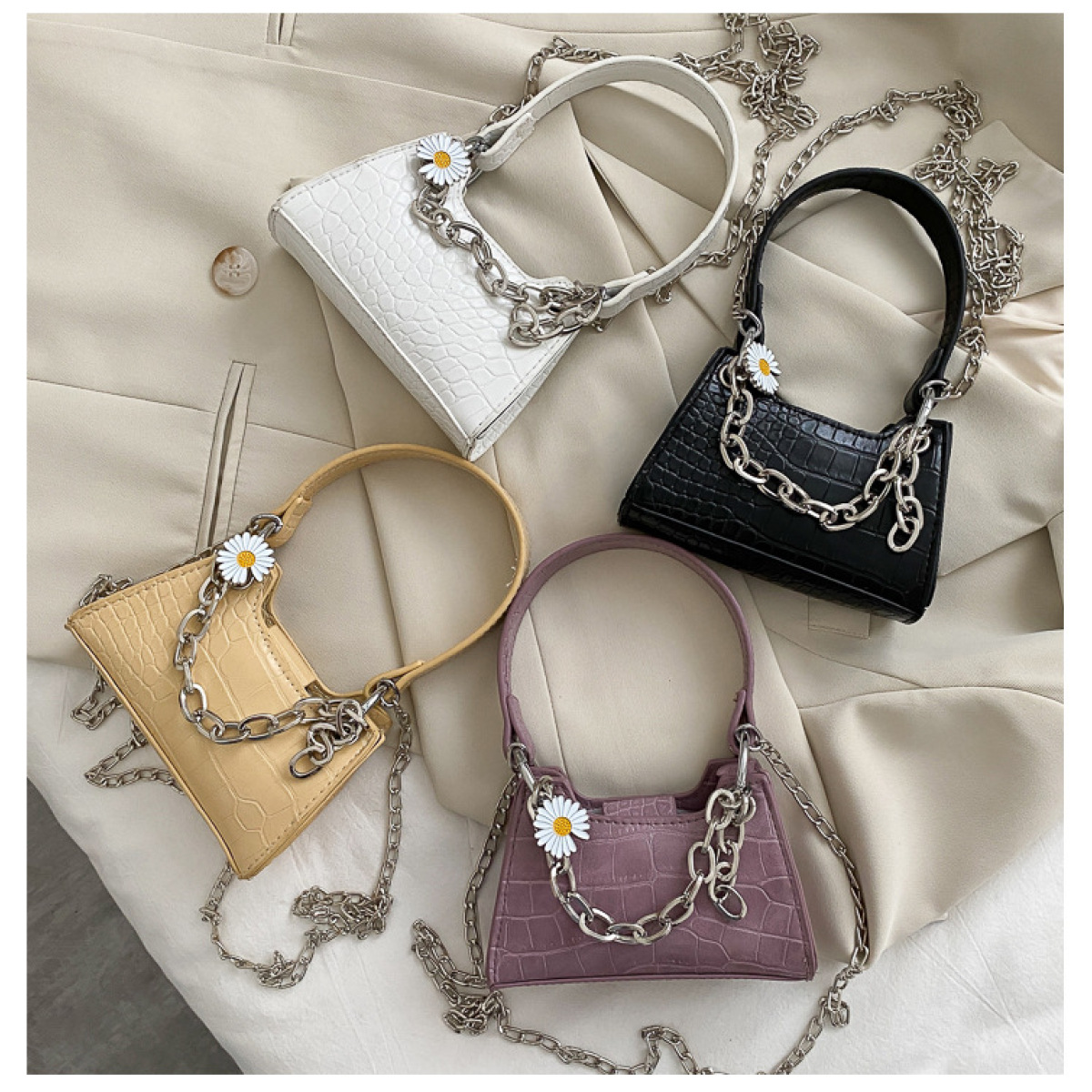Popular elements: crocodile pattern, leather belt, chain, daisy