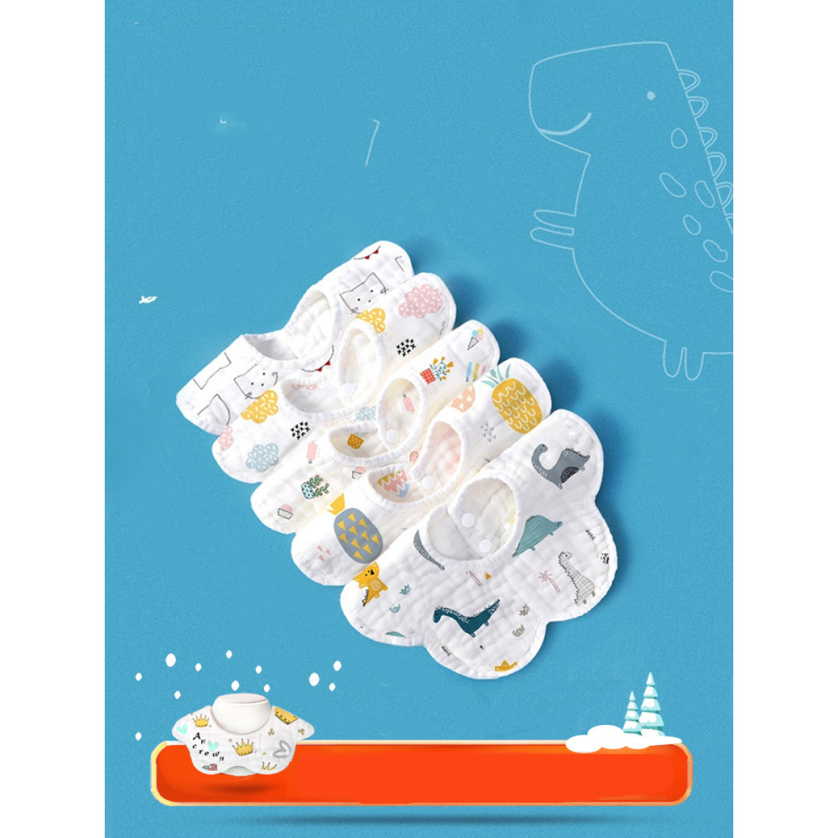 2 Style: [10 layers thick and absorbent] Rabbit+Dinosaur+Crown/3 Free of 2, a total of 5 pieces