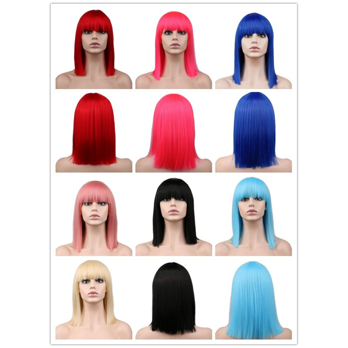 Applicable people, ladies, treatment process, mechanism Wig length Short hair Can be dyed hot Can be dyed Hair material High temperature wire Apply skin tone Any skin tone Apply face type Any face type Style party effect net red, live Wig hairstyle short straight hair cosmetic features party color red, purple, black, rose, royal blue, sky blue, gold, pink
