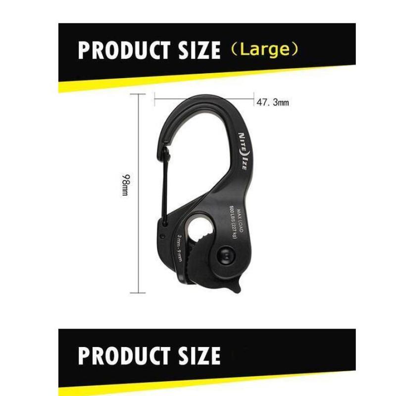 Suitable for rope size: 2-5 mm (small) / 2 - 9.5 mm (large).