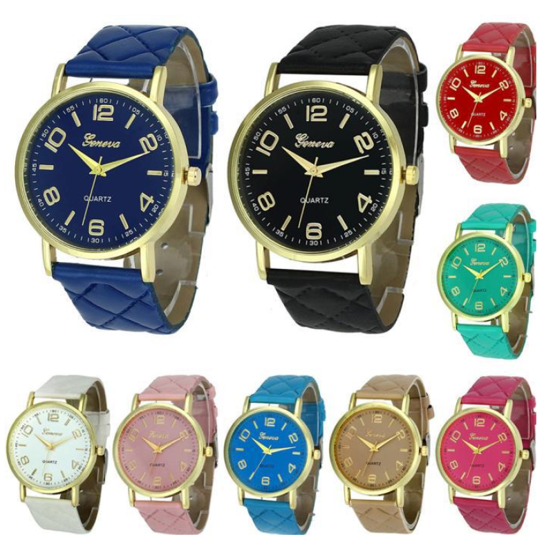 Display type number, pointer Applicable people couple style leisure Waterproof not possible movement type quartz Mirror material ordinary glass mirror strap material imitation leather dial shape round Case Material Metal Item No. Checkered Belt Table Color white, red, green, black, rose, rice bran, light blue, dark blue, pink