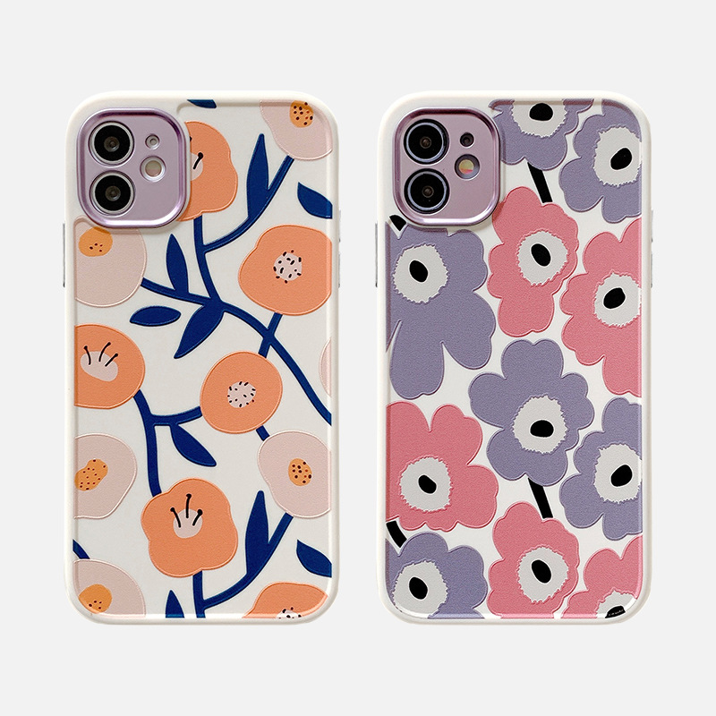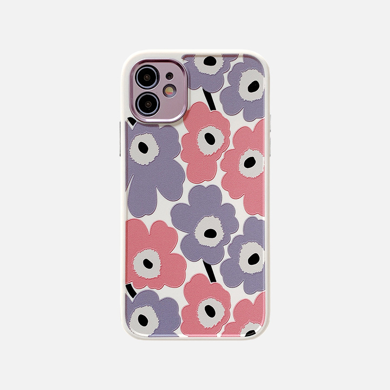 Small flowers iphone12 mobile phone shell straight side 11pro max plating lens ring 8 plus full soft applicable
