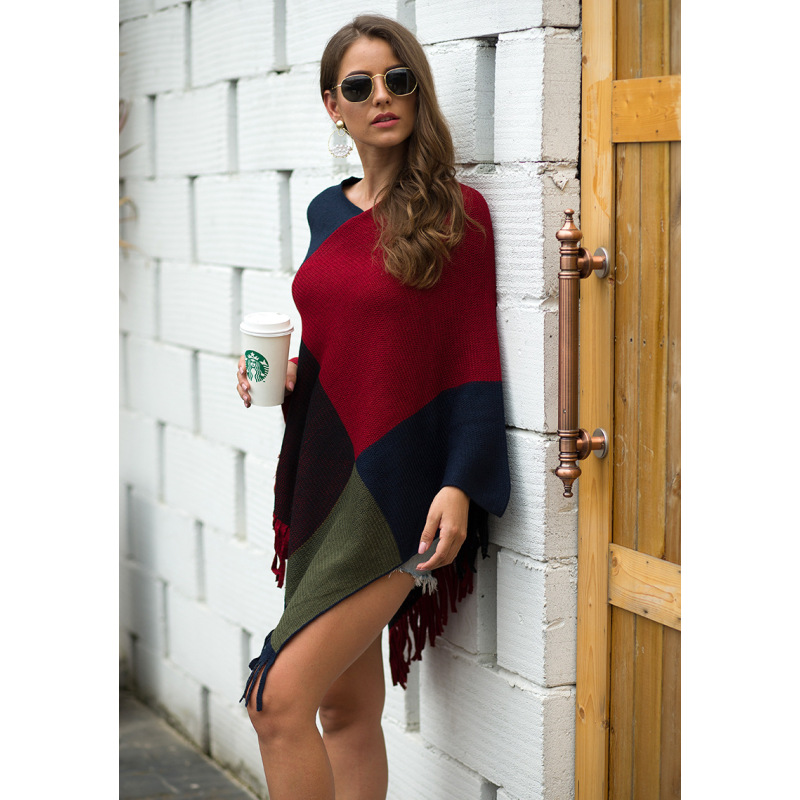 Shawl cape fringed colorblock women's coat