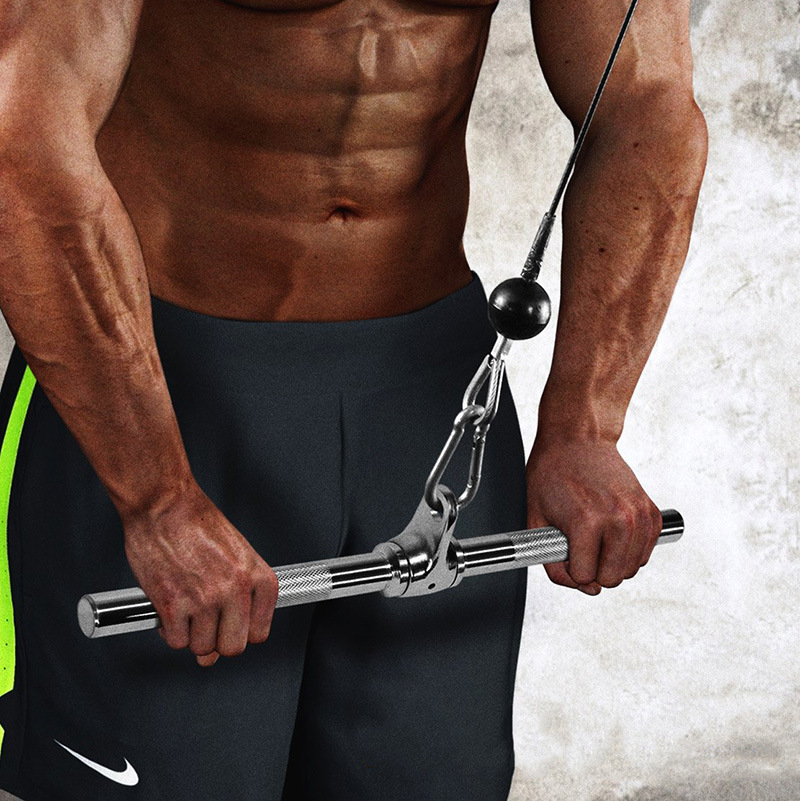 Gym straight steel triceps rod for cable connection