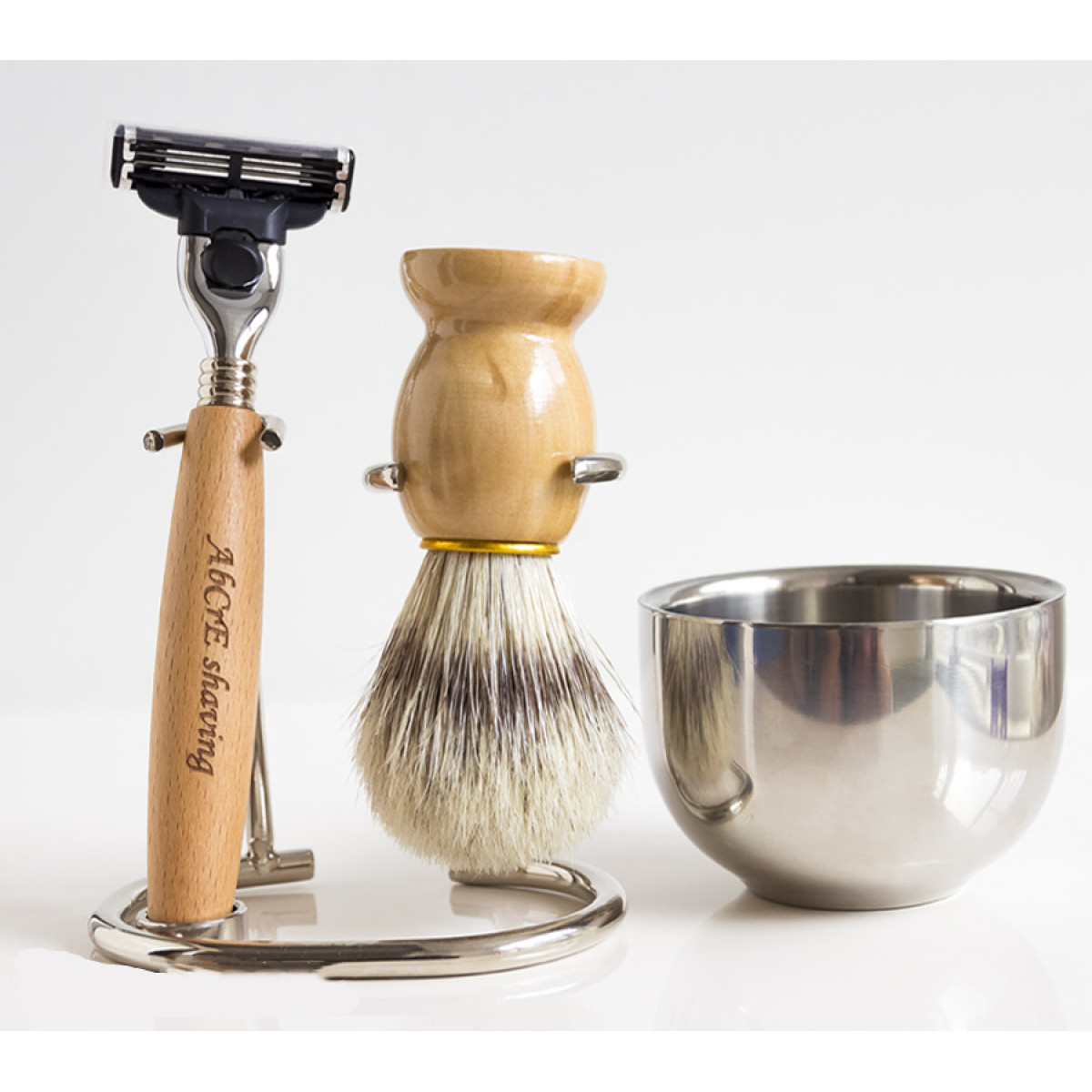 Men's shaving set with solid wood handle