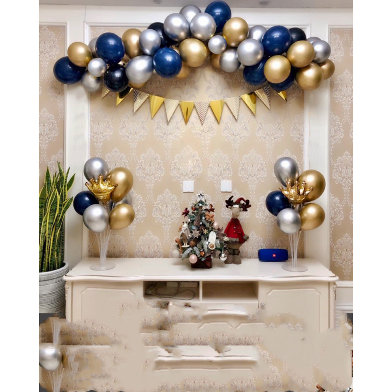 The materials include: 1. 10 metal gold balloons; 2. 10 metal silver balloons; 3. 20 luminous blue balloons; 4;