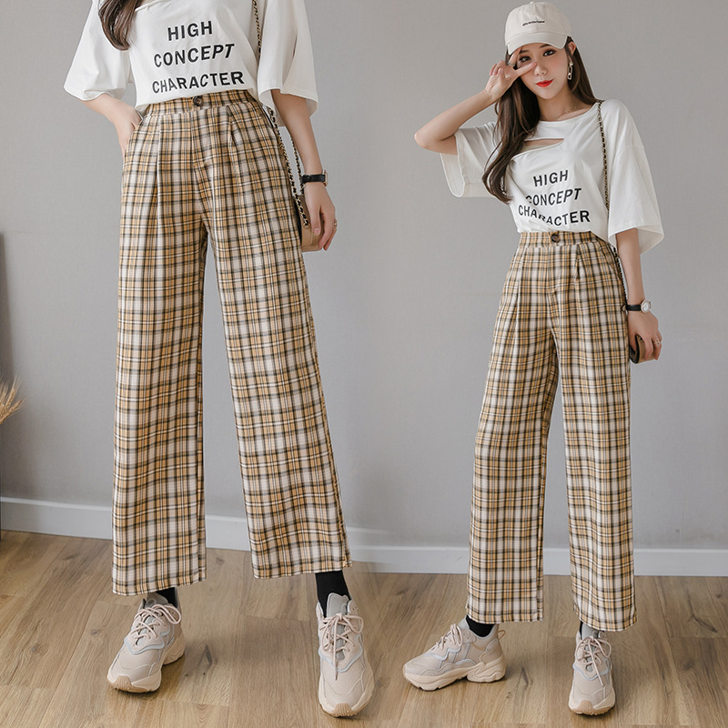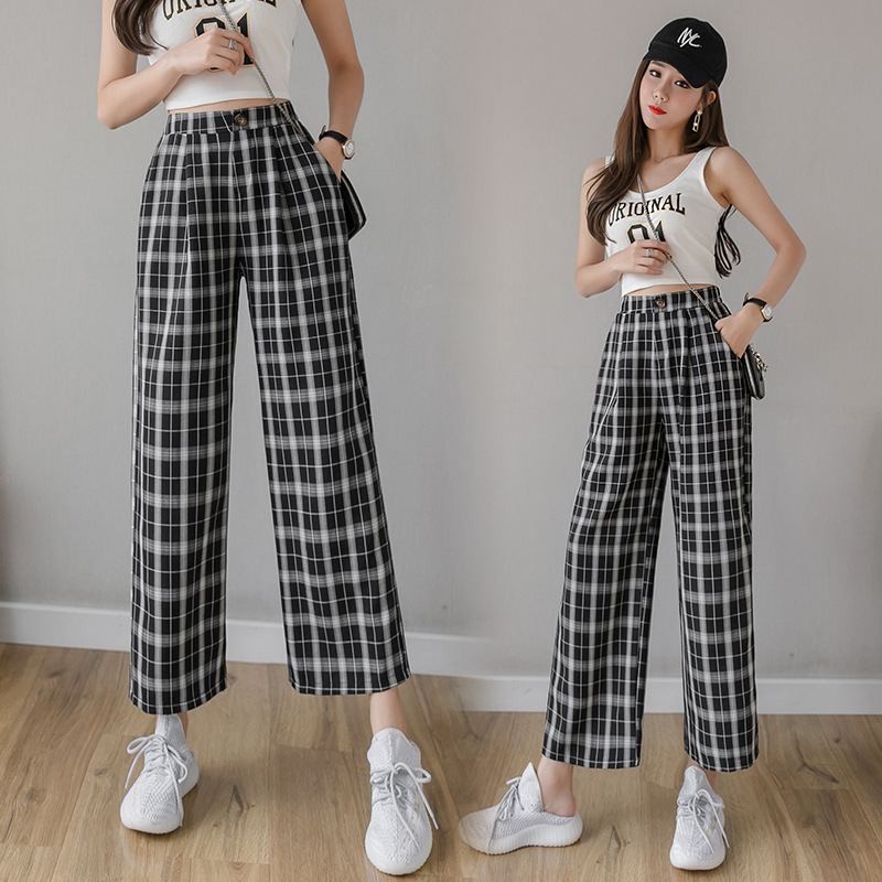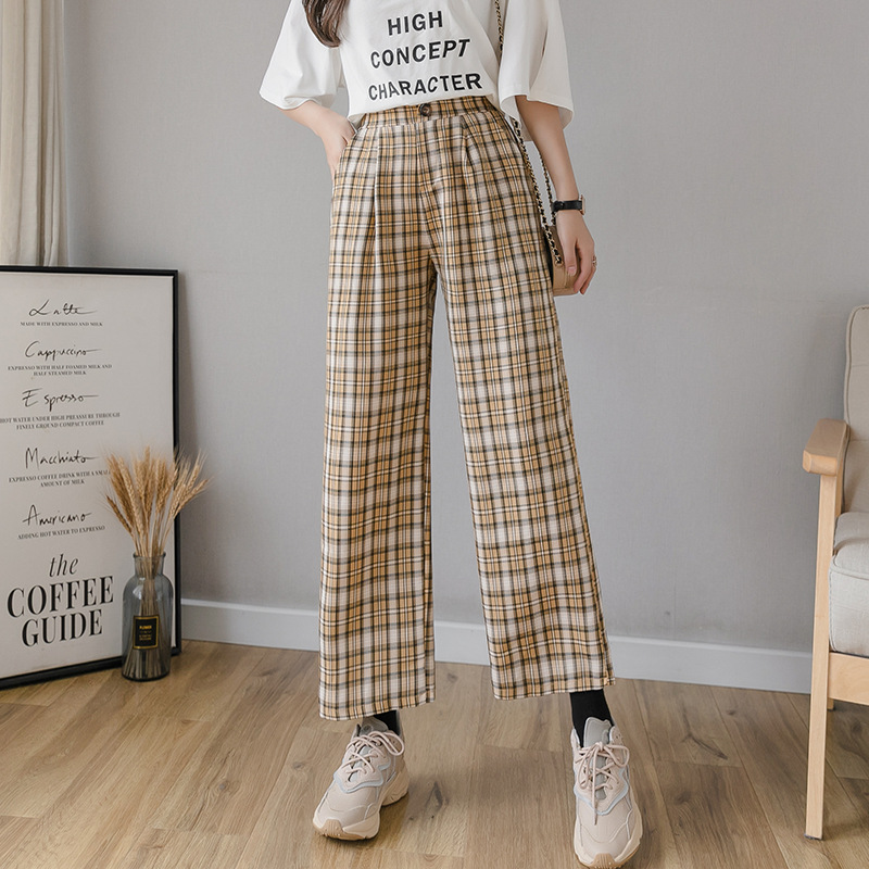 Cotton and linen checked wide-leg pants