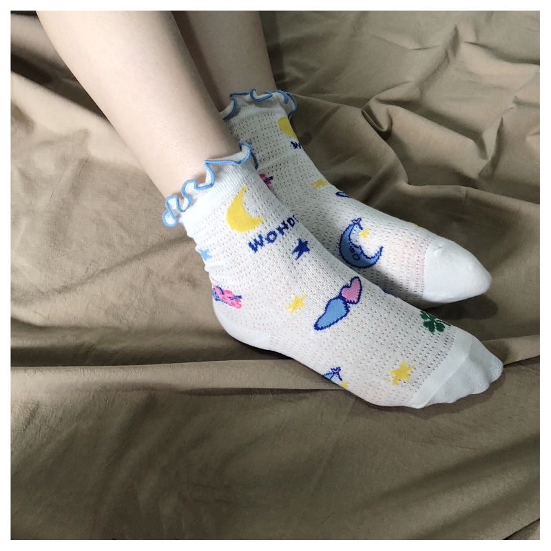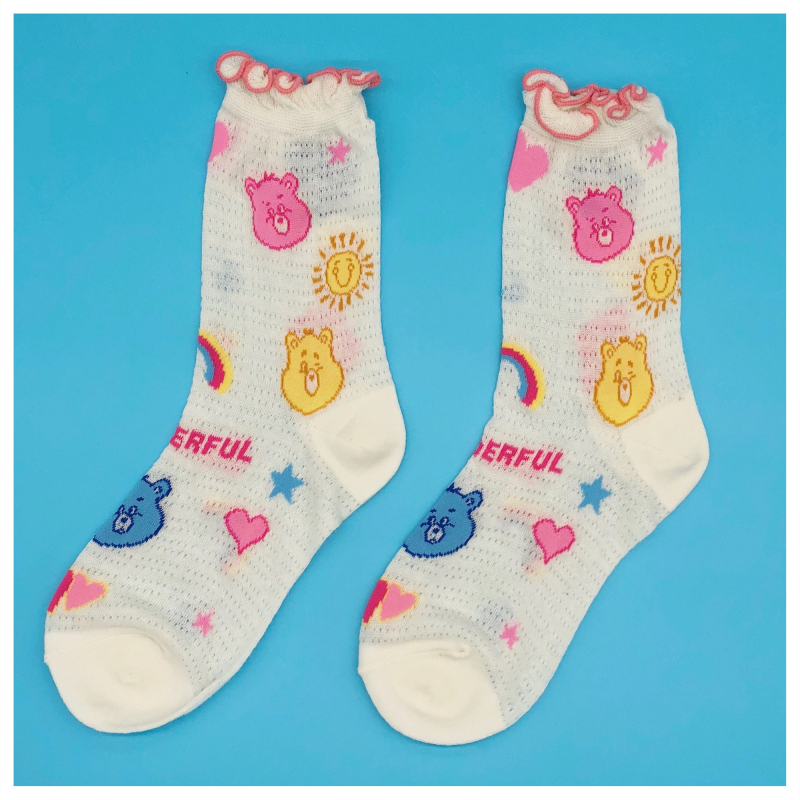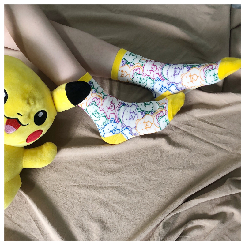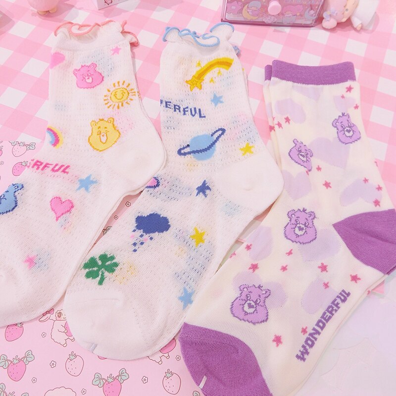High quality creative socks Harajuku rainbow kawaii bear painting animal print cute summer clown lace