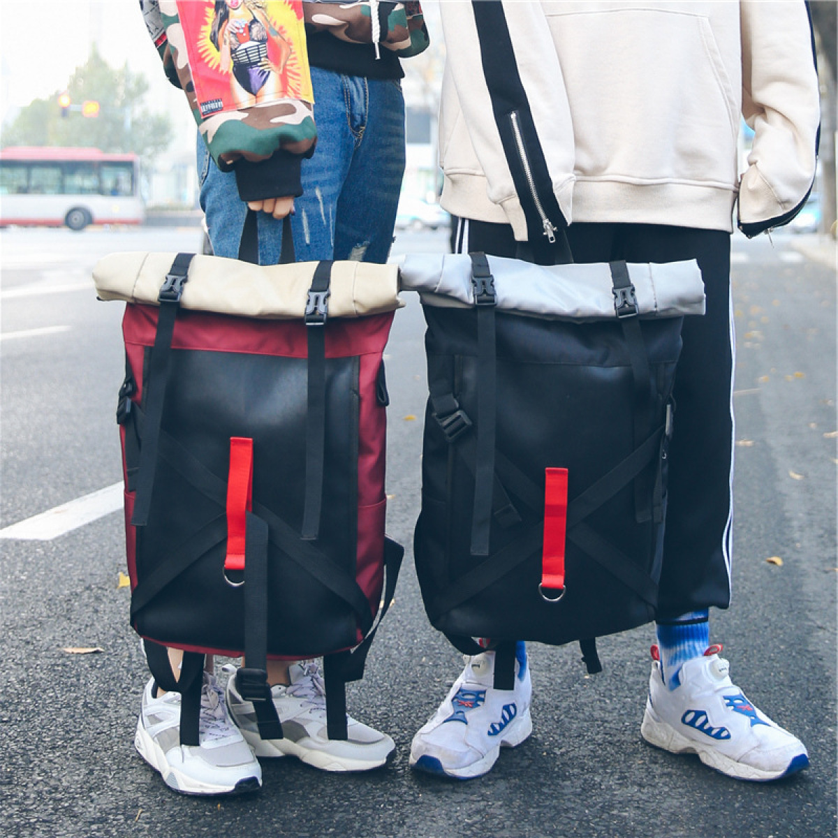 1. This is a fashionable backpack, made of high quality oxford, which is made of spliced elements. It is a medium size backpack.