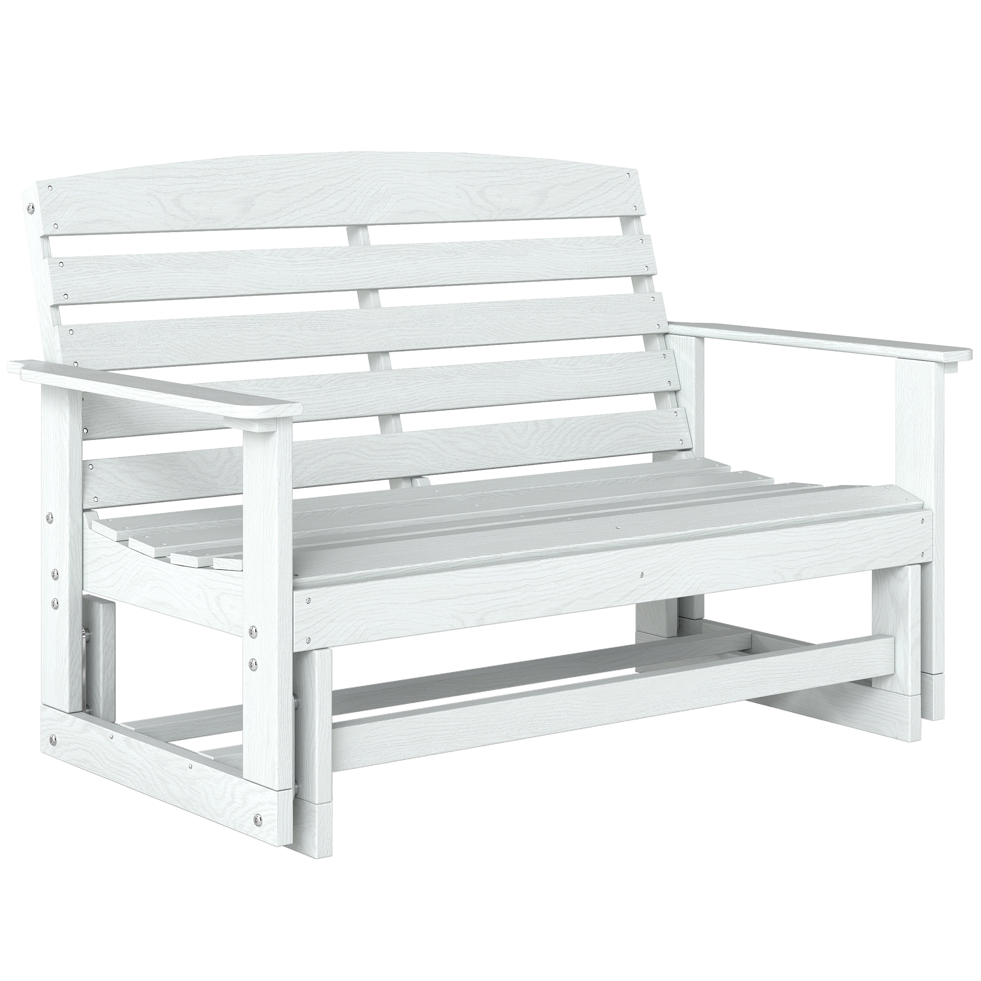 Patio Glider Bench w/ HDPE Slatted Double Rocking Chair, Distressed White