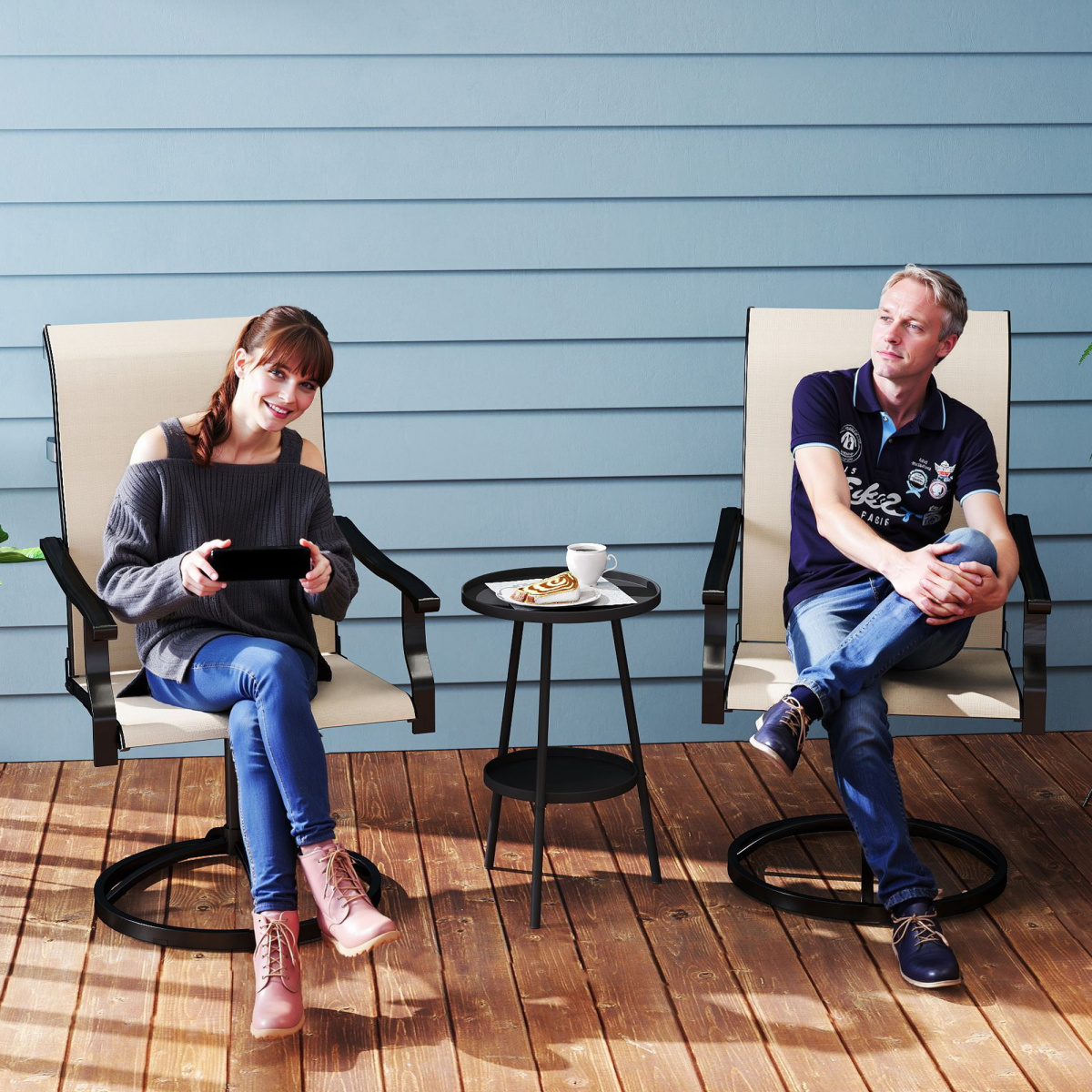 Enjoy the blend of style and function with the [BRAND NAME] swivel patio chairs! Featuring a 360° swivel for effortless movement and breathable mesh fabric for cool, all-day comfort, the outdoor swivel chairs will be your new outdoor favorite. Weather-resistant and easy to clean, it's built for patios, porches, or poolside lounging. Relax, chat, or soak up the sun—these patio swivel chairs have everything you need for unbeatable outdoor vibes!