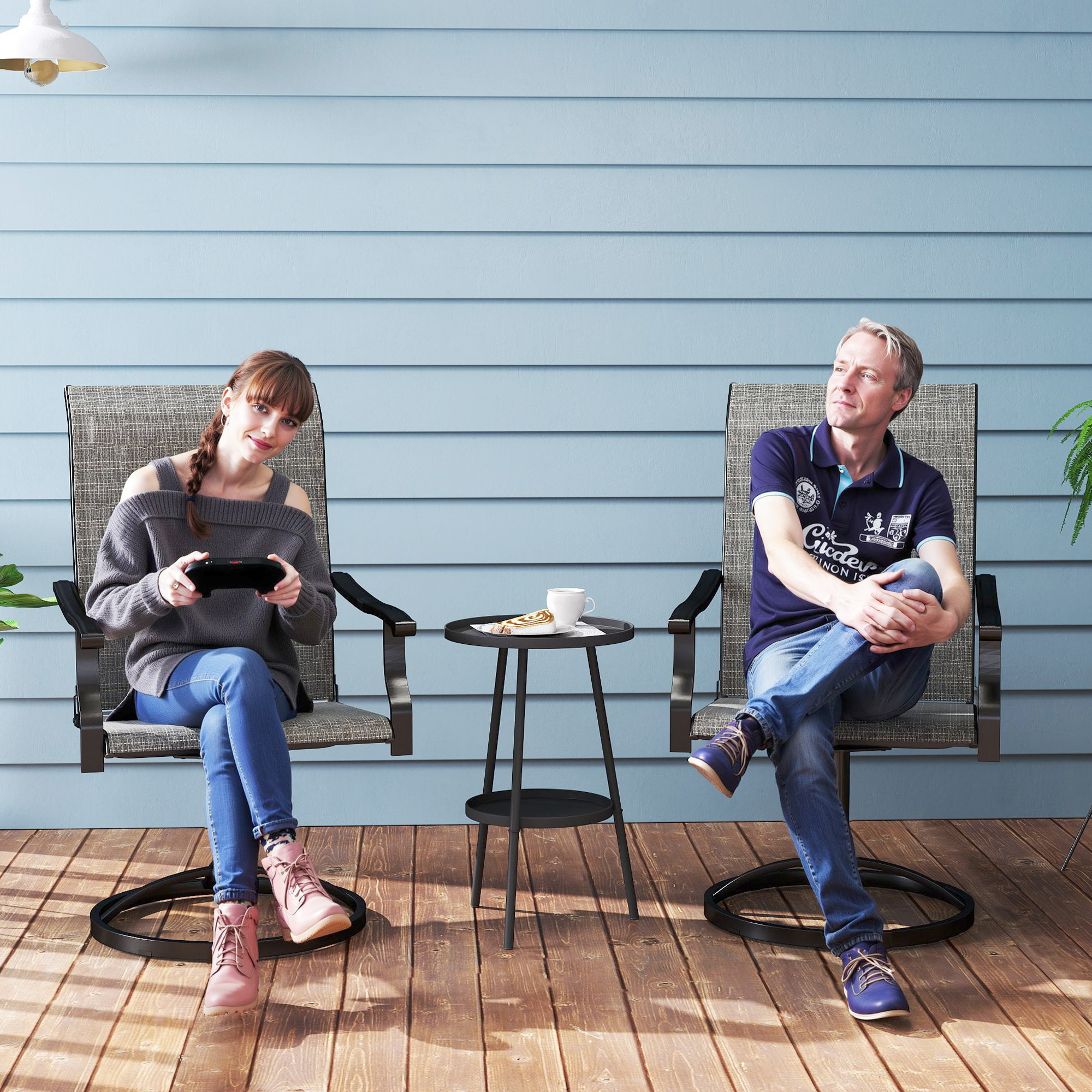 Enjoy the blend of style and function with the [BRAND NAME] swivel patio chairs! Featuring a 360° swivel for effortless movement and breathable mesh fabric for cool, all-day comfort, the outdoor swivel chairs will be your new outdoor favorite. Weather-resistant and easy to clean, it's built for patios, porches, or poolside lounging. Relax, chat, or soak up the sun—these patio swivel chairs have everything you need for unbeatable outdoor vibes!