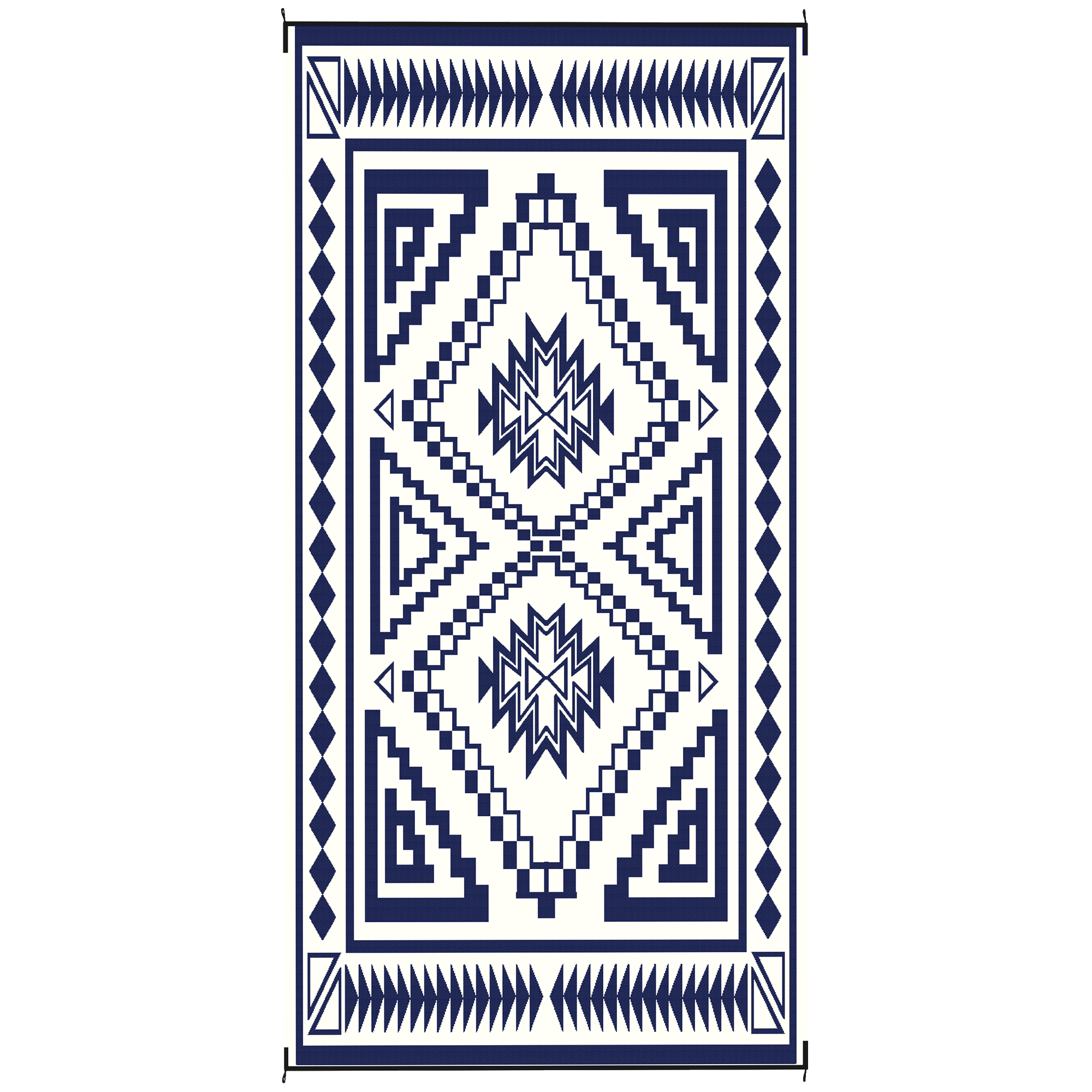Reversible Outdoor Rug, Waterproof Plastic Straw with Carry Bag, 9' x 18', Blue & White Square Patchwork
