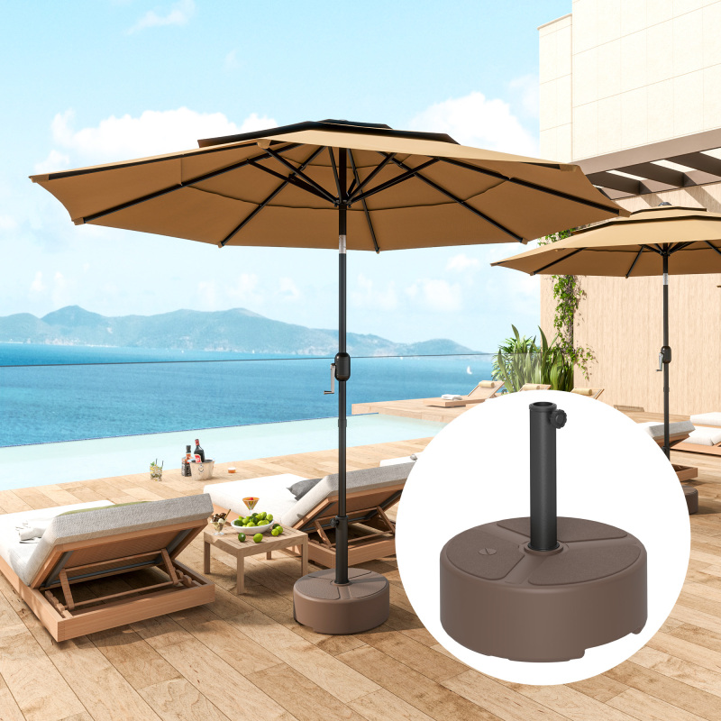 Round Patio Umbrella Base Holder, Heavy Duty Outdoor Umbrella Stand Base, Filled Up to 44lbs with Stand or 40lbs with Water for Garden, Poolside, Brown